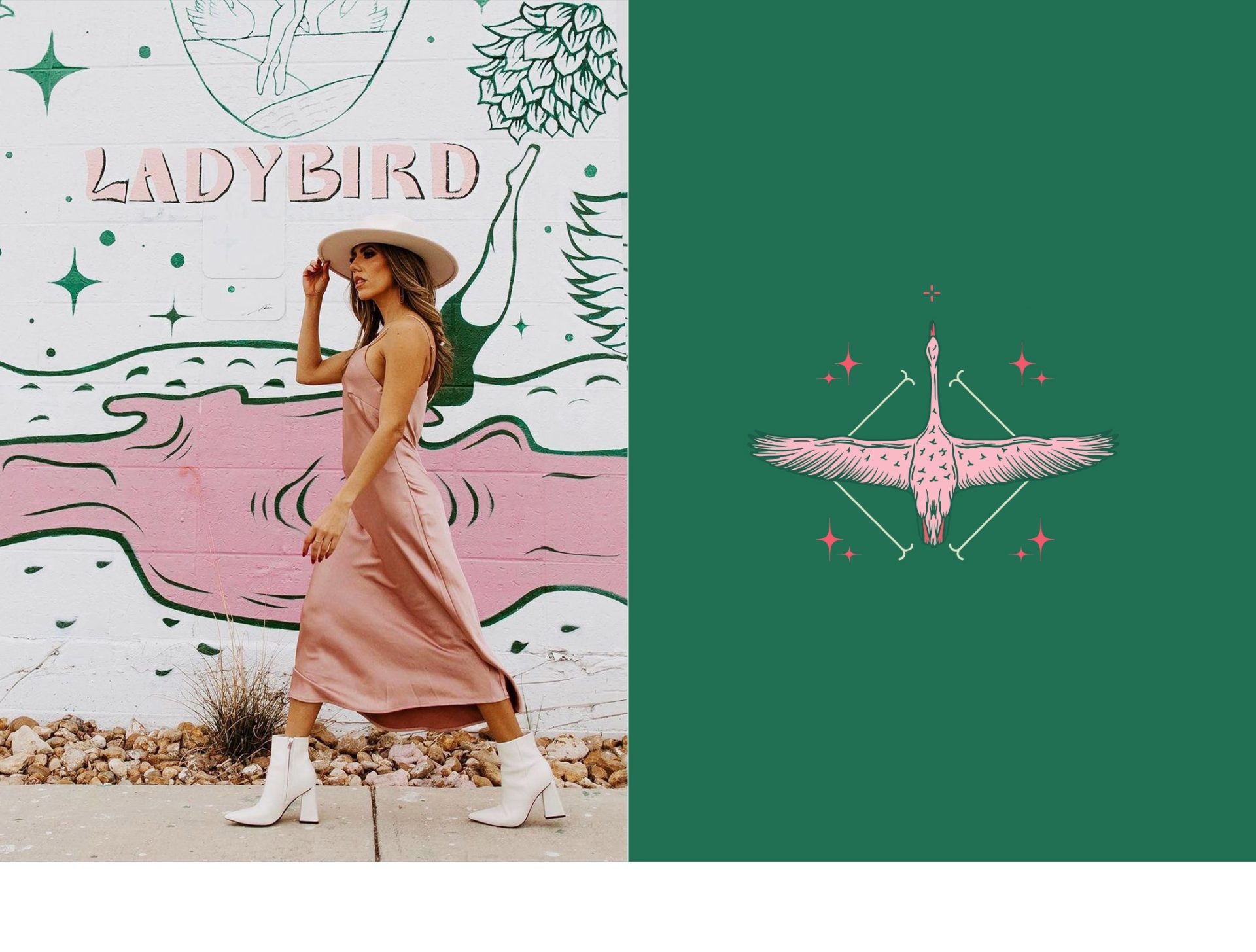 Ladybird is a beer garden located in San Antonio, Texas. We were commissioned to create a brand to act as a tribute to their first female partner. The chosen color palette conveys both the softness and freshness of the beer garden, along with the strength and power embodied by the character. Various elements – such as nature, a goddess-like aura, and birds symbolizing freedom – are incorporated throughout the branding.